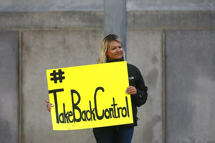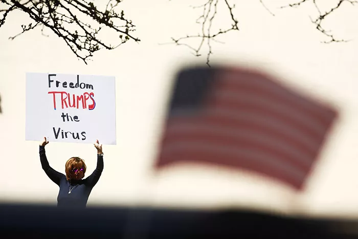 The "Take Back Control" rally in protest of Governor Wolf's stay-at-home order outside of the City-County building in Downtown Pittsburgh on Mon., April 20.