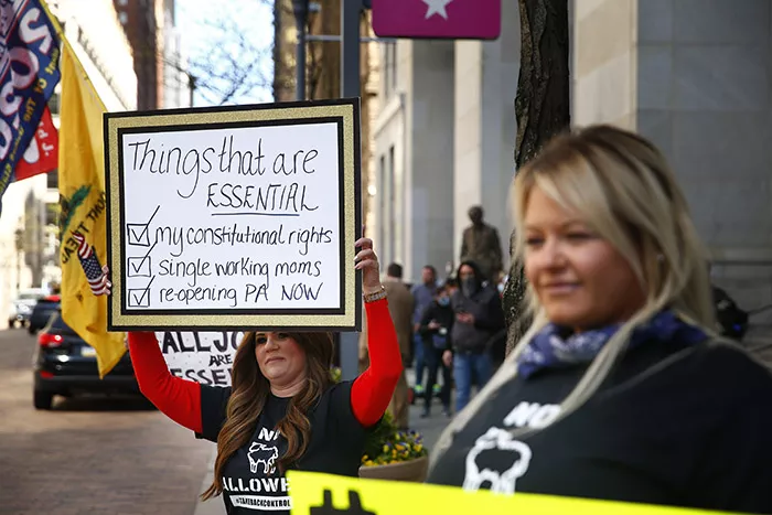 The 'Take Back Control' rally in Downtown Pittsburgh on Mon., April 20, 2020